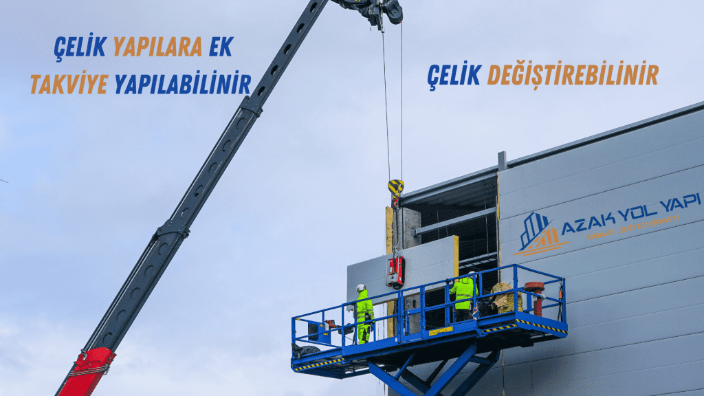 Çelik yapılar istenildiğinde kolayca takviye edilebilir ve hasar gören elemanlar rahatlıkla değiştirilebilir. AZAK YOL YAPI, yapılarınızın ömrünü uzatma ve bakım maliyetlerini düşürme konusunda size destek olur.